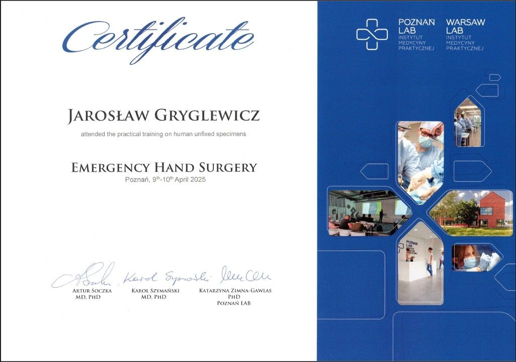 - European Trauma Course (ETC), European Resuscitation Council (Wrocław) IX 2021