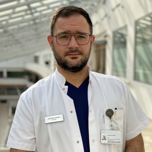 Chciałbym bardzo serdecznie podziękować Panu Profesorowi Jarosławowi Kobieli, który kierował mnie na operację jelita grubego (rozpoznanie rak jelita grubego) za całą opiekę przed i po operacji. Pan Profesor potrafi dać pacjentowi otuchę i dobre słowo, potrafi uspokoić i dać nadzieję, że wszystko będzie dobrze. I tak też było-operację miałem 12 kwietnia 2022 r. w tej chwili czuję się dobrze i po wczorajszym konsylium z Panem Profesorem dowiedziałem się że na chwilę obecną leczenie jest zakończone. Jednocześnie dziękuję całemu personelowi chirurgii UCK za wspaniałą i życzliwą opiekę.