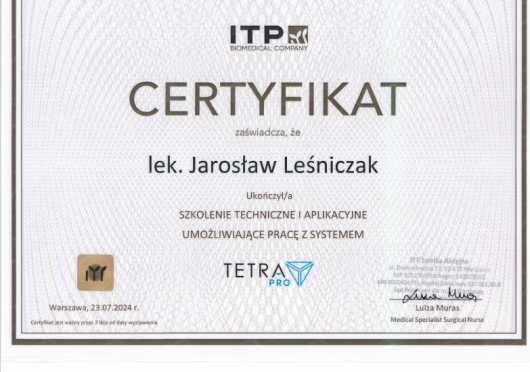 Dr Jarosław Leśniczak co roku aktualizuje swoją wiedzę podczas licznych polskich, i zagranicznych kongresów z zakresu swojej specjalizacji i pokrewnych.