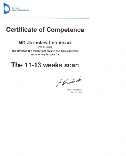 Od wielu lat jest czynnym zawodowo specjalistą położnictwa i ginekologii, pracując zarówno w opiece ambulatoryjnej jak i szpitalnej, przez co zapewnia swoim pacjentkom najwyższy poziom opieki. W ramach swojej praktyki zawodowej oferuje kompleksowe prowadzenie ciąży fizjologicznej jak i wysokiego ryzyka. Specjalizuje się w nowoczesnej diagnostyce ultrasonograficznej w ginekologii i położnictwie korzystając z zaawansowanej aparatury USG. Wykonuje badania prenatalne, dopplerowskie płodu, a także narządu rodnego. Jego umiejętności potwierdzają Certyfikat Londyńskiej Fundacji Medycyny Płodowej (Fetal Medicine Foundation - FMF) do wykonywania badań prenatalnych w I trymestrze ciąży oraz kalkulacji ryzyka wad genetycznych płodu, a także Certyfikat Sekcji Ultrasonografii Polskiego Towarzystwa Ginekologów i Położników.