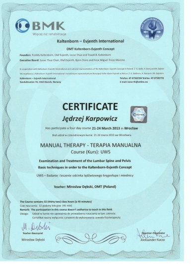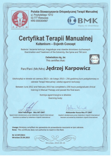 • Rehabilitacja TMT Jędrzej Karpowicz • Terapia manualna •