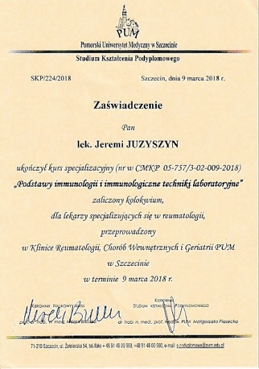 Niemniej, jeżeli ktoś postanowi wybrać się do tego Pana na wizytę, to mam nadzieję, że zostaną przez Pana Juzyszyna lepiej potraktowani. Może to też była częściowo moja wina, bo wybrałam sobie lekarza, który jak twierdzi w swoim własnym opisie nie ma jeszcze specjalizacji z Reumatologii; będę mieć nauczkę na przyszłość.• Centrum Medyczne ArsMedis • konsultacja reumatologiczna •