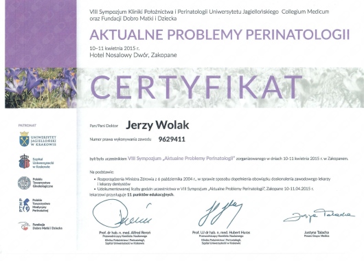 Jakie ubezpieczenia akceptuje Jerzy Wolak?Jerzy Wolak nie przyjmuje w ramach ubezpieczenia, tylko w ramach płatnych wizyt prywatnych. W razie wątpliwości zalecamy kontakt ze specjalistą.