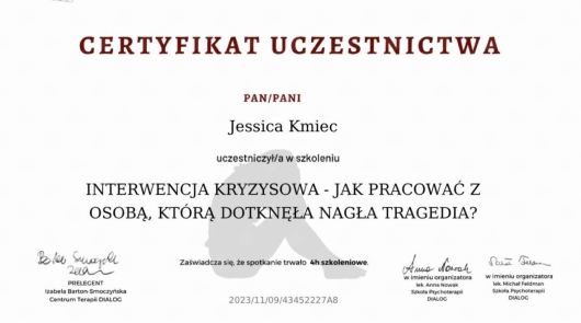 Serdecznie polecam, pani Jessica to bardzo empatyczna kobieta. Otrzymałam ogrom zrozumienia i mądrych słów.