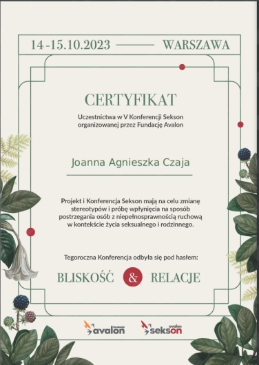 Jestem psychologiem, seksuologiem, terapeutą. Nie zamkniętym w ramach przekonań o zawodzie. Jestem lojalna, pragmatyczna i możesz mieć pewność, że żadna informacja od Ciebie nie wyjdzie poza nasze rozmowy. Korzystam z wiedzy nurtów terapeutycznych, których uczyłam się na wielu szkoleniach jak terapia integracyjna, egzystencjalna, RTZ, ACT, schematów, poznawczo-behawioralna CBT, skoncentrowana na rozwiązaniach TSR, terapia par, terapia prowokatywna. To między innymi pozwala mi na pracę z wieloma ludzkimi problemami i trudnościami. Dodatkowo rozwijałam się w stronę fizyczności i sportu. Jestem trenerem jeżdziectwa - doskonale rozumiem trudności w uprawianiu sportu, zwłaszcza tak trudnego jak tandem ze zwierzęciem. Z kolei zawód hipoterapeuty/kinezyterapeuty i diagnosty ruchowego pozwala na szerokie rozumienie pracy z ciałem, jego zmian, wszelkich kłopotów z tym związanych i tego jak ważne jest dla człowieka i jego rozwoju. Doświadczenie i wiedza pozwala mi również na świadomą pracę z rodzicami dzieci z niepełnosprawnościami. Mam bardzo szeroki wachlarz doświadczeń z osobami doświadczającymi żałoby - nie tylko ze względu na czyjąś śmierć, ale również poczucie straty czegokolwiek. Pracuję również z osobami utożsamiającymi się ze społecznością LGBTQ+, mających trudności w sferze orientacji, przynależności, określenia potrzeb czy odczuwających nietypowe potrzeby lub żyjących z dyskomfortem - pracuję z trudnościami u kobiet, mężczyzn, nastolatków oraz w zakresie seksuologii dziecięcej, trudnymi myślami dotyczącymi sfery intymnej, edukacji seksualnej czy interwencji w przypadku osób po wypadkach czy problemach zdrowotnych prowadzących do zmian w zakresie życia, w tym seksualnego. Pracuję również z osobami pracującymi w sektorze usług seksualnych. Bardzo chętnie pracuję z nastolatkami i młodymi osobami wkraczającymi w dorosłość. Może się martwisz...a może boisz czegoś? Możesz też odczuwać stratę, doświadczyć śmierci czy smutku. A może nie wiesz co masz robić, jaką podjąć decyzję? Może masz wokół siebie niewłaściwych ludzi, a może jesteś sam/sama? Może robisz coś, co przeszkadza Ci samej/samemu? Może jednak jesteś rodzicem, któremu skończyły się pomysły i/lub Twoje dziecko/dzieci są odbiorcą Twoich trudnych myśli? A może jesteś nastolatkiem, który nie może dogadać się z rodzicem? A może jesteś w związku, w którym nie powinnaś/nie powinieneś być? Może być też tak, że nikt Cię nie rozumie. Lub tak, że robisz wszystko, żeby było dobrze, a ciągle nie jest. Lub tak, że myślisz, że musisz coś robić, a wcale tego nie chcesz. Jest też możliwość, że wiesz co to przemoc... Lub próbujesz dogadać się ze swoją połówką. A może nie jesteś kimś, kim chcesz być? Albo pomyślałaś/pomyślałeś, że z Tobą jest coś nie tak? A może nic nie czujesz... Odezwij się - nic, co ludzkie, nie jest mi obce. Jeśli jednak wiesz, że potrzebujesz rozmowy, ale masz jakieś pytania czy zobaczyć się ze mną - zgłoś mi je, z pewnością Ci na nie odpowiem. Dla Twojej jasności poniżej znajdziesz większość spraw, z którymi możesz się do mnie zgłosić. - zamartwianie się - lęki - obniżenia nastroju - kryzys życiowy - żałoba - poczucie straty - trudności wychowawcze - odczuwanie przewlekłego bólu - nastolatek i młody dorosły - praca ze świadomością - praca seksualna - terapia par - problemy seksualne - LGBTQ+ - sport - niepełnosprawności - praca w sektorze seksualnym - ofiara / sprawca przemocy - problemy w relacji z jedzeniem / bariatria - pewność siebie - nieśmiałość - rozwój - uczenie się - rozwój w ADHD / ADD Au / AuDHD - praca z kobietami doświadczającymi PMS/ PMDD - praca z osobami będącymi w/po związkach z osobami toksycznymi/zaburzeniami osobowości - praca ze zdrowiem - wiele więcej.