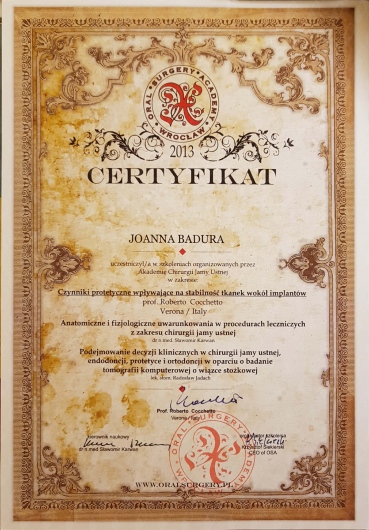 Stomatologia jest moją pasją, którą staram się rozwijać każdego dnia. Swoje kwalifikacje stale podnoszę poprzez uczestnictwo w kursach, szkoleniach, konferencjach stomatologicznych oraz wolontariacie w ośrodkach akademickich.