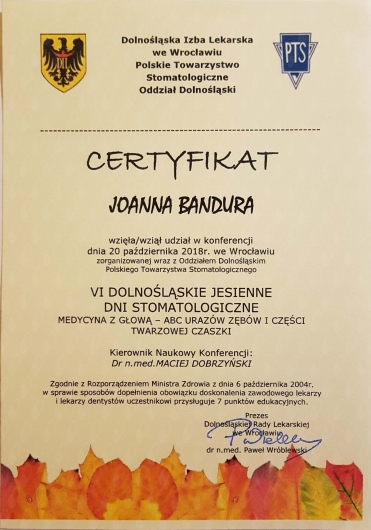 Nazywam się Joanna Bandura. Jestem absolwentką Uniwersytetu Medycznego we Wrocławiu.