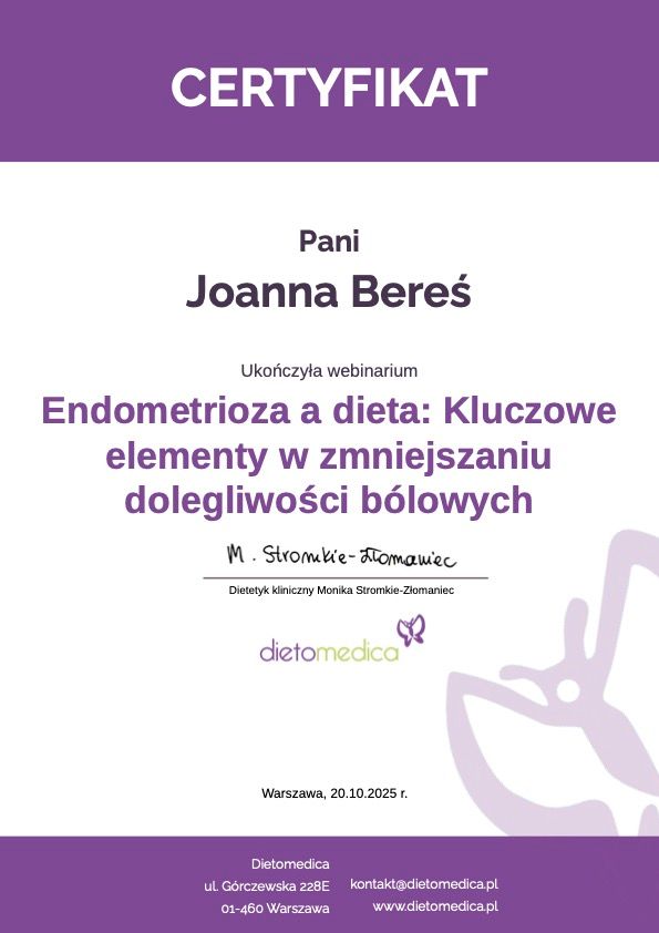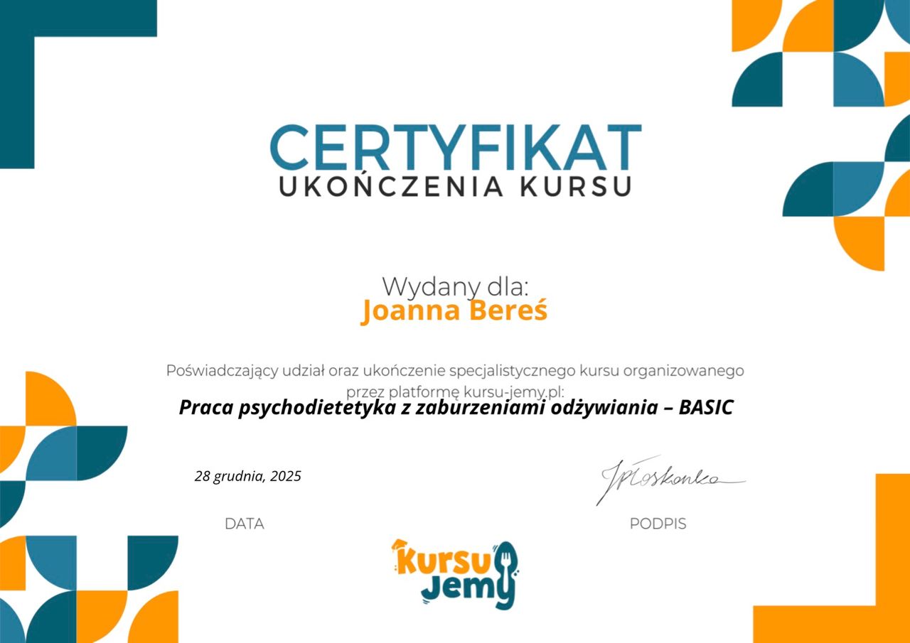 Witaj, nazywam się Joanna Bereś, jestem dietetykiem klinicznym, psychodietetykiem oraz entuzjastką zdrowego stylu życia.