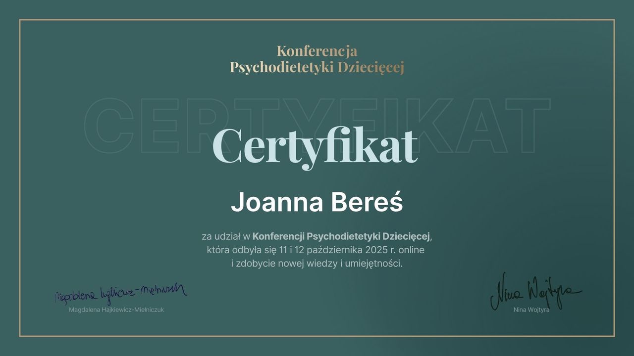 Czy Joanna Bereś przyjmuje online, bez konieczności pojawiania się w placówce?Tak, Joanna Bereś oferuje konsultacje online. Wybierz opcję „konsultacja online” przy umawianiu wizyty, a zobaczysz dostępne terminy.