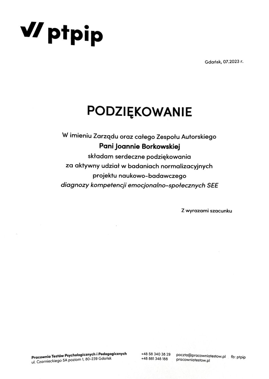 To była ogromna przyjemność móc towarzyszyć Pani w procesie terapii i obserwować pozytywne zmiany, jakie zaszły i zachodzą w Pani życiu. Mam nadzieję, że zdobytą wiedzę i narzędzia będzie Pani dalej wykorzystywać w taki sposób, w jaki Pani wykorzystywała podczas procesu terapeutycznego.