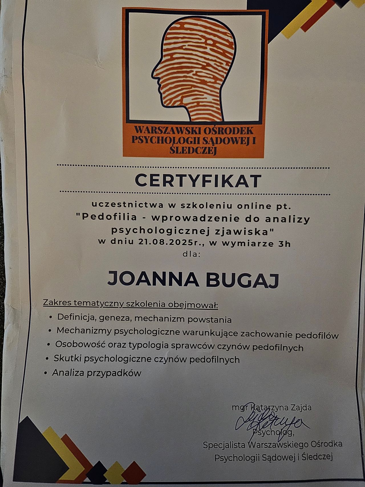 Pani Joanna to psycholog z ogromną wiedzą, zaangażowany i empatyczny. Otrzymałam wsparcie, którego potrzebowałam.