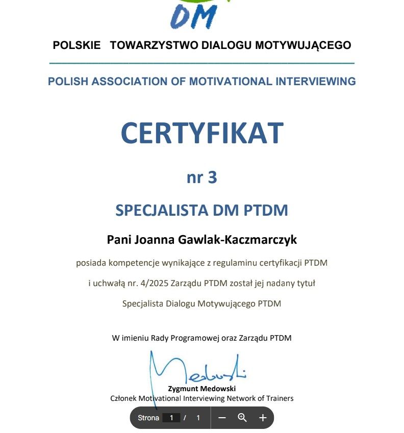 Widujemy się raz w miesiącu, ale jeżeli pojawia się jakiś problem piszę wiadomość do Pani Joanny i zawsze mogę liczyć na wsparcie.