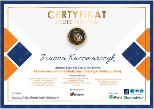 Pani Joanna jest bardzo empatyczną osobą, bardzo wspierającą pacjenta i posiada ogromną wiedzę. Każda decyzja, co do kolejnego menu jest ze mną omawiana, a moje „dietetyczne zachcianki” i kulinarne preferencje są brane pod uwagę. Oczywiście oprócz planu dietetycznego, mogłam liczyć na ogromne wsparcie w zakresie wyboru odpowiedniej suplementacji, która na prawdę odnosi efekty. Całe leczenie dietetyczne, które wprowadza Pani Joanna jest odpowiednio dobrane do moich problemów zdrowotnych - insulinooporności i PCOS.
