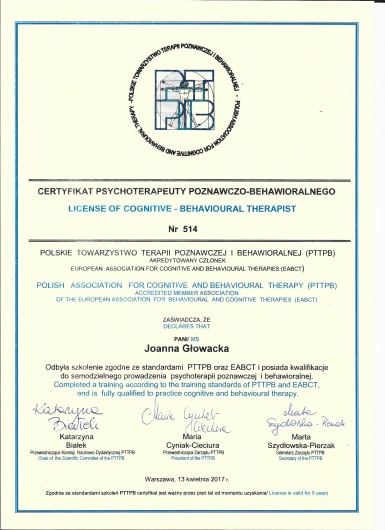 Jestem bardzo zadowolona z pracy z Panią Joanną. Trafiłam na terapię będąc w trudnej sytuacji w życiu i szczerze przyznam, że nie wyobrażam sobie jak miałabym przejść przez nią, gdyby nie wsparcie profesjonalisty. A tutaj właśnie tak było! Pani Joanna jest świetna w tym co robi.Terapia prowadzona jest w przyjazny sposób, ze zrozumieniem i lekką dozą humoru - co jest fantastyczne.