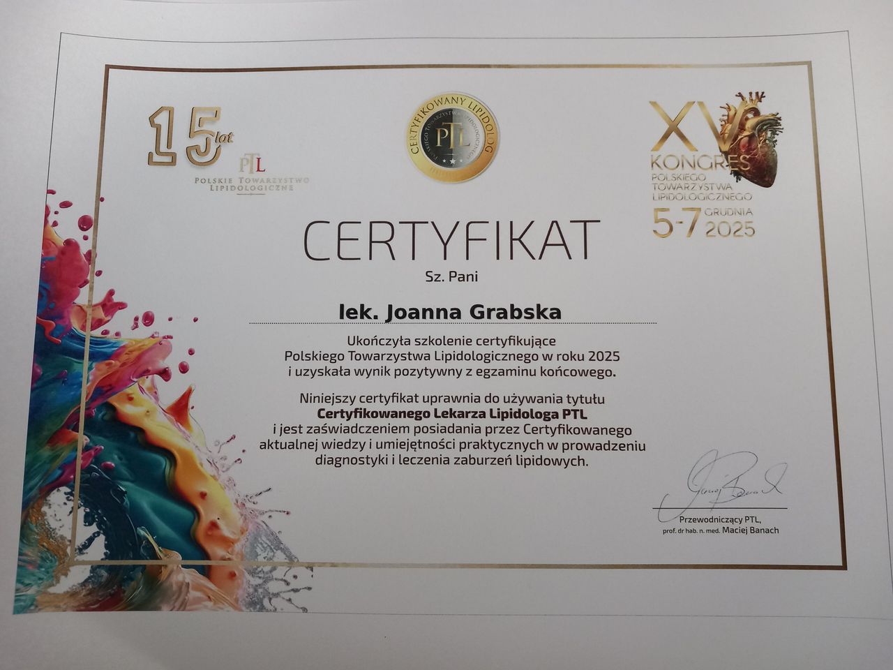 certyfikat II stopnia leczenia otyłości według Ogólnopolskiego programu certyfikacji i akredytacji PTBO oraz certyfikat PTLB