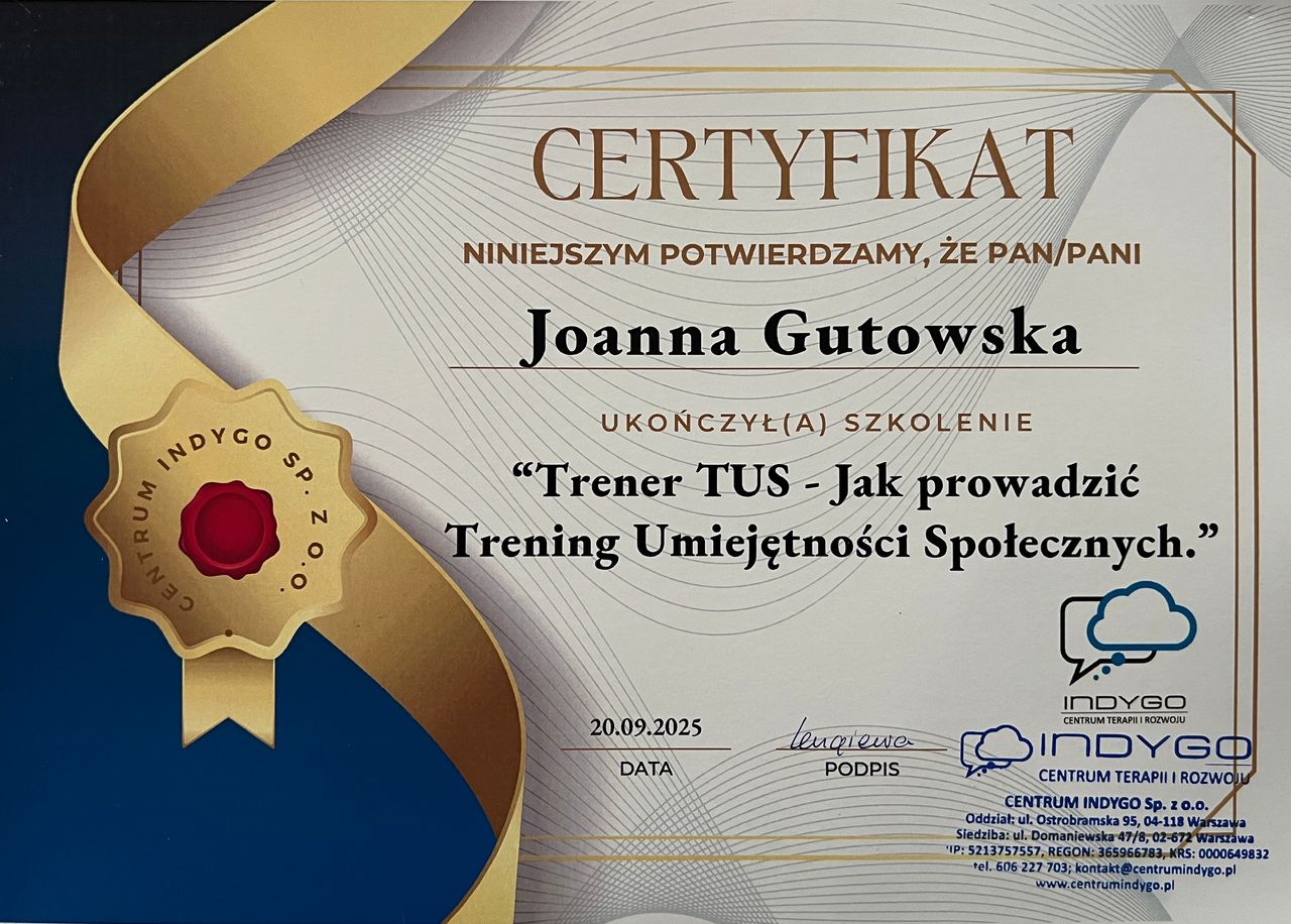 Ukończyłam psychologię o specjalności klinicznej na Akademii Pedagogiki Specjalnej w Warszawie. Jestem w trakcie czteroletniego szkolenia z psychoterapii poznawczo-behawioralnej akredytowanego przez Polskie Towarzystwo Terapii Poznawczej i Behawioralnej, której jestem członkiem. Dodatkowo ukończyłam szkolenia I i II stopnia z Treningu Umiejętności Społecznych, uzyskując kwalifikacje trenera. Regularnie korzystam z superwizji, aby rozwijać swoje kompetencje i wspierać pacjentów w możliwie najlepszy sposób.