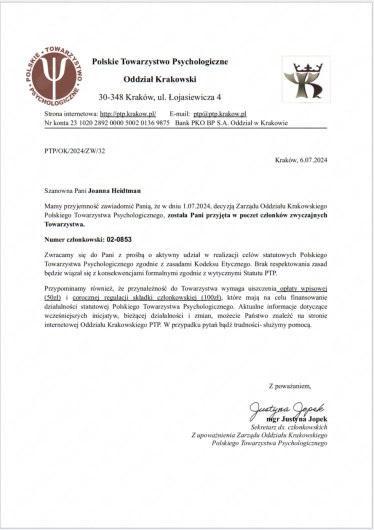 Unikalne połączenie gruntownej wiedzy psychologicznej i perspektywy socjologicznej, jakimi Pani Doktor dysponuje, było dla mnie cenne - dało mi bowiem szerszą perspektywę rozumienia relacji, w których funkcjonuję.