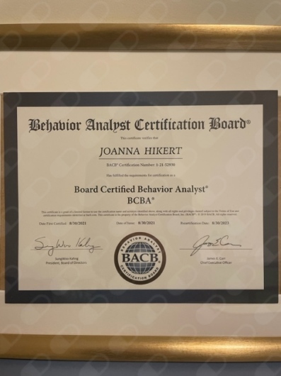* Zdobyłam międzynarodową licencję analityka zachowania BCBA (Board Certified Behavior Analyst) (nr certyfikatu: 1-21-52930) oraz polską licencję terapeuty behawioralnego.