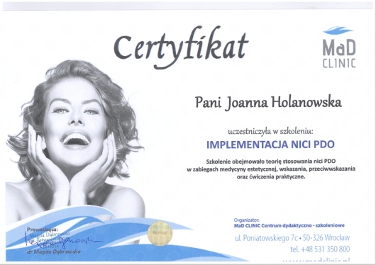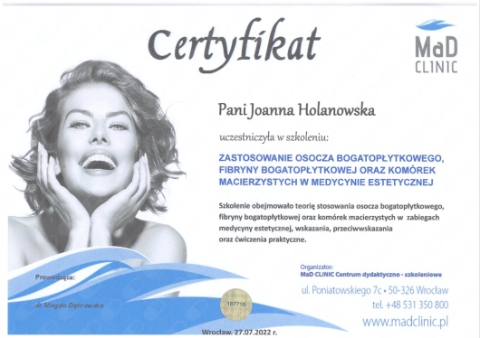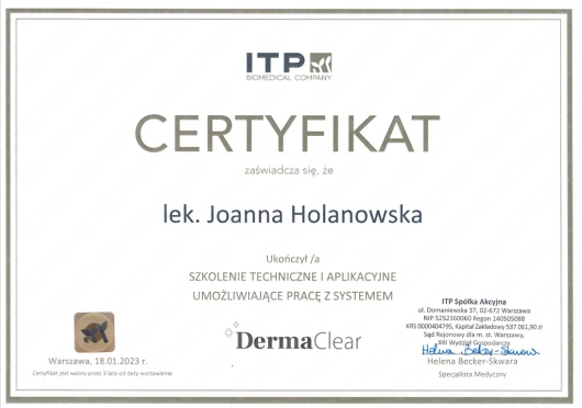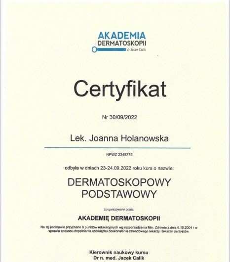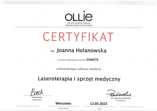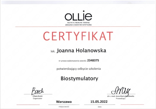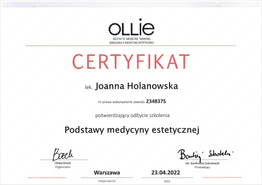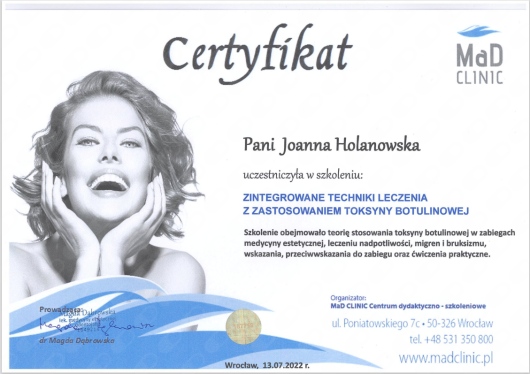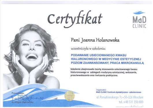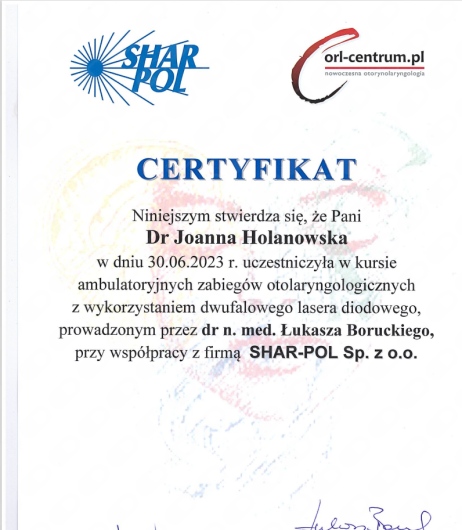 Jaki jest zakres porad oferowanych przez Joanna Holanowska?Joanna Holanowska to laryngolog, lekarz wykonujący zabiegi medycyny estetycznej. Na podstawie swojego doświadczenia i wykształcenia Joanna Holanowska oferuje usługi takie jak: Konsultacja z zakresu medycyny estetycznej, konsultacja laryngologiczna, diagnostyka chrapania i bezdechów sennych - konsultacja laryngologiczna, omówienie ew. wyniku badania poligraficznego/polisomnograficznego, planowanie dalszego leczenia, Konsultacja laryngologiczna dorosłych, konsultacja laryngologiczna dzieci, konsultacja laryngologiczna z tympanometrią, Konsultacja laryngologiczna z endoskopią.