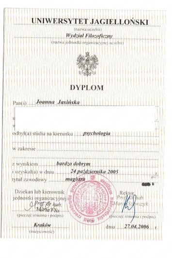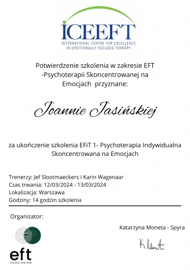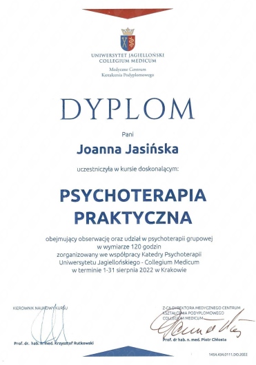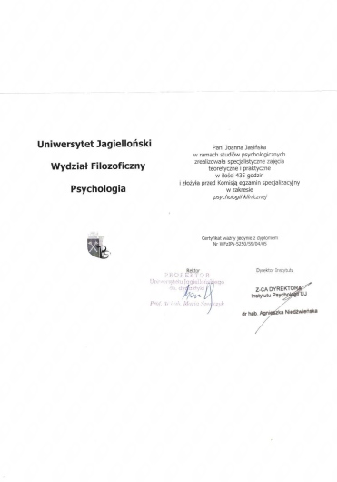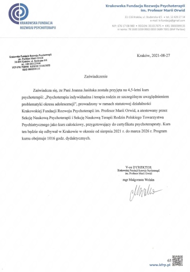 Pozdrawiam serdecznie Joanna Jasińska Psycholog
