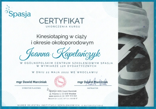 Jaki jest zakres porad oferowanych przez Joanna Kapelańczyk?Joanna Kapelańczyk to fizjoterapeuta. Na podstawie swojego doświadczenia i wykształcenia Joanna Kapelańczyk oferuje usługi takie jak: konsultacja fizjoterapeutyczna, fizjoterapia dna miednicy, fizjoterapia kobiet w ciąży / fizjoterapia okołoporodowa, terapia rozejścia mięśni prostych brzucha, przygotowanie do porodu, Terapia blizny po cesarskim cięciu, Manipulacja powięzi wg Stecco, fizjoterapia, fizjoterapia uroginekologiczna, kinesiotaping.