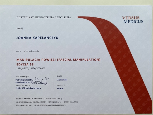 Wizyta spełniła wszystkie oczekiwania. Pani Joanna dokładnie wszystko tłumaczy, z empatią i uśmiechem.Po wizycie natychmiastowa ulga, wyszłam z kompletem ćwiczeń, wskazówkami. Serdecznie polecam!