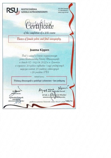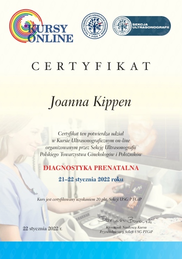 Jaki jest zakres porad oferowanych przez Joanna Kippen?Joanna Kippen to w trakcie specjalizacji (ginekolog). Na podstawie swojego doświadczenia i wykształcenia Joanna Kippen oferuje usługi takie jak: konsultacja ginekologiczna, konsultacja ginekologiczna + USG, konsultacja położnicza, USG ginekologiczne, USG ginekologiczne transvaginalne, Wizyta w ciąży (pierwsza), wkładka domaciczna, monitorowanie owulacji, Prowadzenie ciąży - ciąża mnoga, Zdjęcie szwów.
