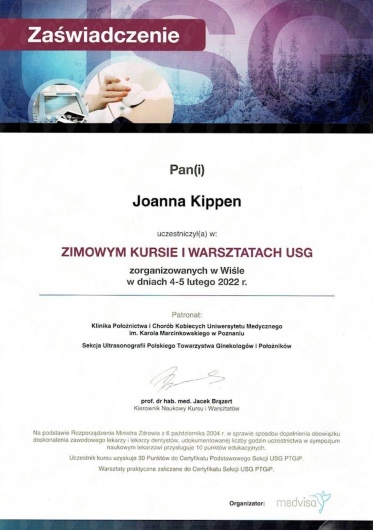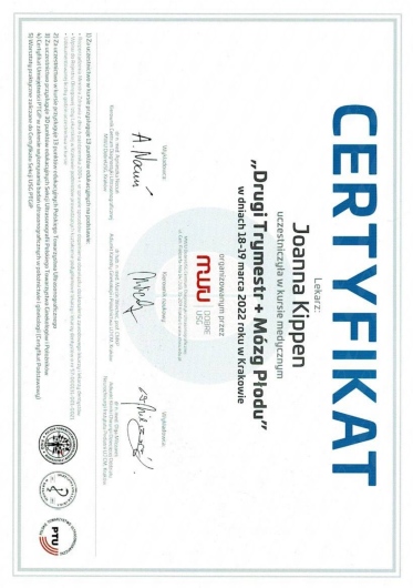 Pani dr Joanna Kippen jest bardzo empatyczną i miłą osobą, rzadko można dziś spotkać takie zaangażowanie i troskę w relacji lekarz -pacjent. Bardzo się cieszę, że w trudnym dla mnie czasie trafiłam na tak właściwą i potrzebną mi wtedy osobę. Dzięki kompetencjom i szybkiemu działaniu Pani Doktor jestem już w innej sytuacji zdrowotnej a jak już tak dobrze trafiłam to zostałam :-)