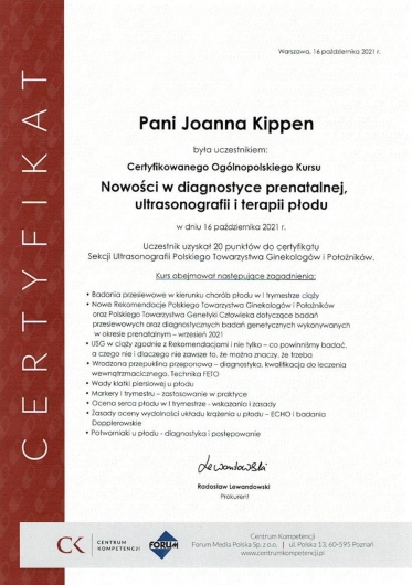 Wspaniała Pani Doktor! Prowadziłam ciążę w ramach NFZ, ale z powodu zmiany lekarza w poradni, postanowiłam chodzić do Pani Doktor prywatnie, bo wiedziałam, że ciężko będzie znaleźć tak dobrego i zaangażowanego lekarza :) wszystkie badania bardzo szczegółowo przeprowadzone, Pani doktor odpowiada na wszystkie pytania i poświęca tyle czasu, ile potrzeba. Jest nie tylko świetnym lekarzem, ale też cudownym, empatycznym człowiekiem. Coraz trudniej trafić na takich lekarzy w dzisiejszych czasach, dlatego serdecznie polecam każdej kobiecie:)