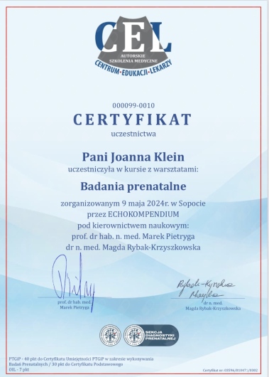Bardzo przemiła pani doktor, która swoją postawą dodaje otuchy i wsparcia. Pełna pasji do zawodu i chęci ciągłego szkolenia się co niewątpliwie przekłada się na posiadaną wiedzę zgodną ze światowymi trendami i najnowszymi zaleceniami medycznymi. Pani doktor wraz z dr Sebastianem Klein przeprowadziła u mnie cięcie cesarskie, którego przebieg jak i rekonwalescencja przebiegła wręcz bajkowo. Polecam panią doktor każdej kobiecie.