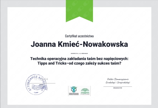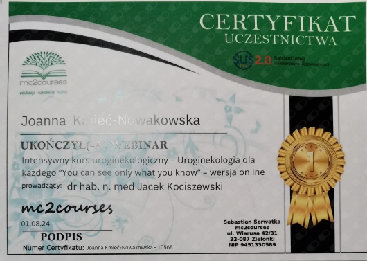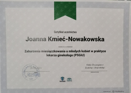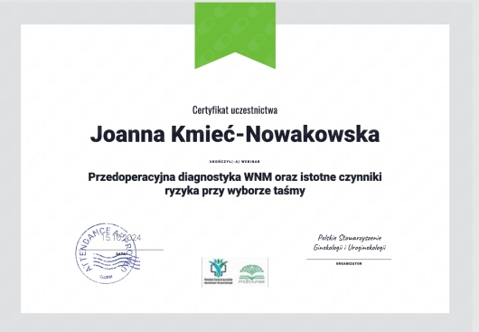 Wiceprezes Zarządu Polskiego Stowarzyszenia Ginekologii i Uroginekologii.
