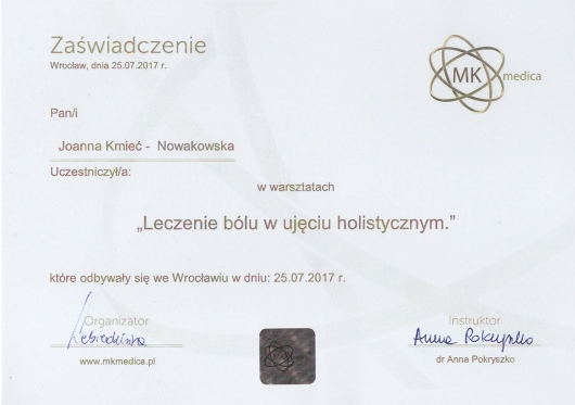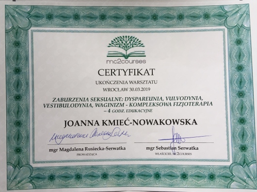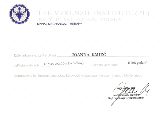 Bardzo polecam wizytę u Pani Joanny - fachowa wiedza, zaangażowanie, skuteczna terapia :) dzięki wizytom przed i po porodzie nie odczuwam żadnych skutków ciąży i porodu SN (x2 :))