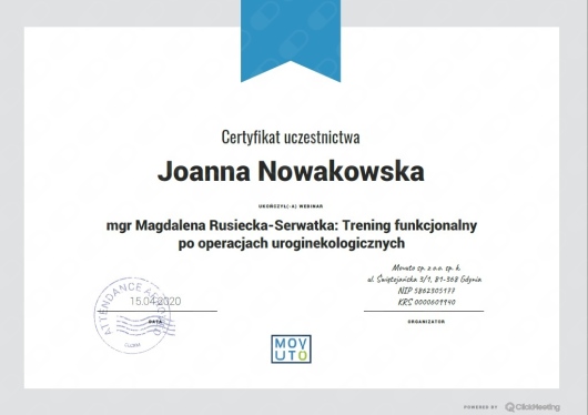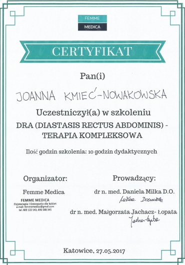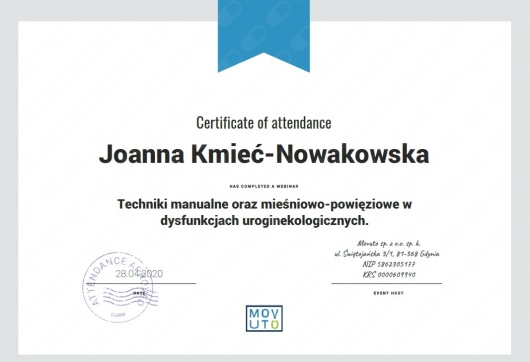 Jaki jest zakres porad oferowanych przez Joanna Kmieć-Nowakowska?Joanna Kmieć-Nowakowska to fizjoterapeuta. Na podstawie swojego doświadczenia i wykształcenia Joanna Kmieć-Nowakowska oferuje usługi takie jak: fizjoterapia kobiet w ciąży / fizjoterapia okołoporodowa, fizjoterapia uroginekologiczna - bóle miesiączkowe i endometrioza, fizjoterapia uroginekologiczna - dysfunkcje seksualne, fizjoterapia uroginekologiczna - nietrzymanie moczu, Mobilizacja blizny, Terapia blizny po cesarskim cięciu, fizjoterapia uroginekologiczna, Fizjoterapia endometriozy, rehabilitacja ginekologiczna, rehabilitacja uroginekologiczna.