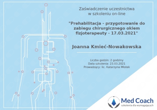 Czy Joanna Kmieć-Nowakowska przyjmuje online, bez konieczności pojawiania się w placówce?Nie, w tym momencie Joanna Kmieć-Nowakowska nie oferuje konsultacji online.