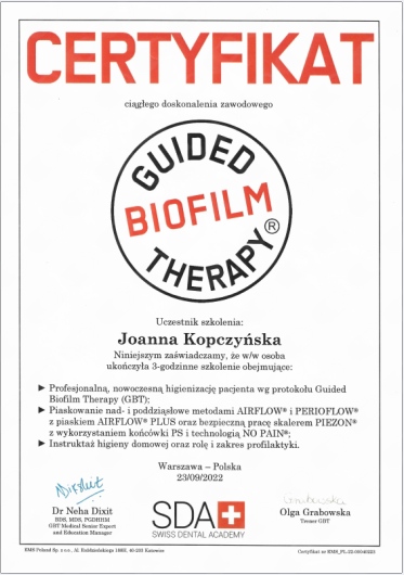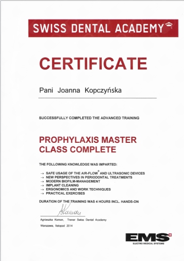 • oczyszczenie zębów z osadów (piaskowanie)