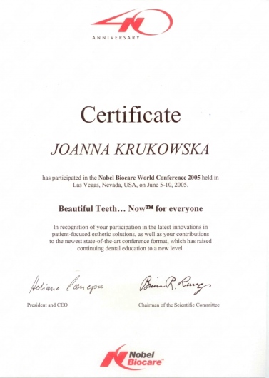 Profesjonalizm to za mało aby zaopiniować działania pani doktor Joanny Krukowskiej.Empatia i uśmiech przy zestresowanym pacjencie daje poczucie bezpieczeństwa.Zabieg wykonany perfekcyjnie i szybko.Brawo polecam panią doktor wszystkim ,dla których ważne jest zdrowie i piękny uśmiech.Jestem pani wierną pacjentką .