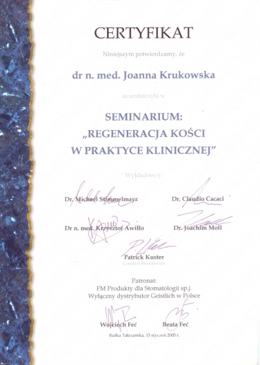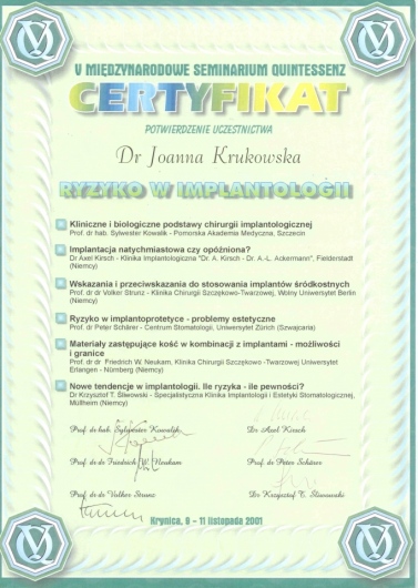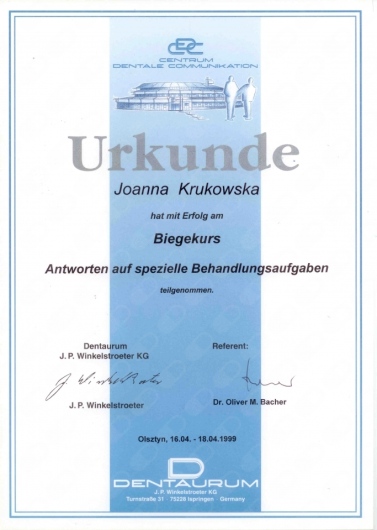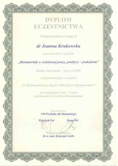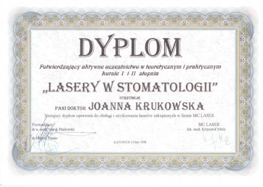 Ja zaufałem Pani doktor całkowicie. Pani Joanna przedstawiła mi warianty leczenia, porównała co będzie dla mnie najlepsze, rozwiała moje wątpliwości i obawy. Leczenie przebiegało planowo, zgodnie z harmonogramem, a ciepła, miła atmosfera i osoba Pani doktor Joanny Krukowskiej zapewniły mi minimum stresu oraz zadowolenie z usługi. Obecnie nie wyobrażam sobie aby udać się do innego stomatologa.