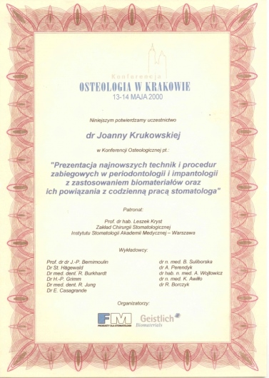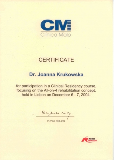 Jaki jest zakres porad oferowanych przez Joanna Krukowska?Joanna Krukowska to stomatolog. Na podstawie swojego doświadczenia i wykształcenia Joanna Krukowska oferuje usługi takie jak: All-on-4, implanty.