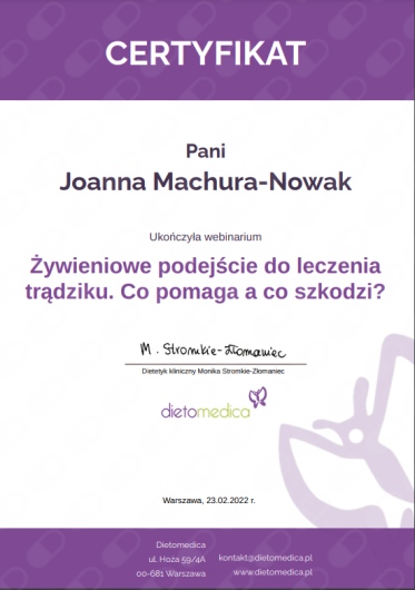 Polecam wizytę u Pani Joanny. Miła i przyjazna atmosfera, wszystko szczegółowo wytłumaczone, Pani Joanna uważnie słucha pacjenta. Przepisy smaczne, proste, efekty zadawalające.