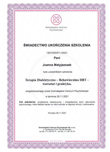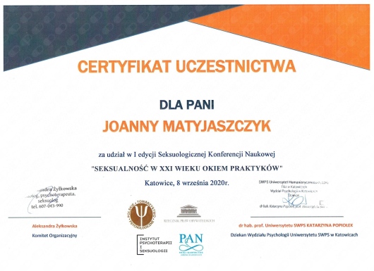 • Joanna Matyjaszczyk Gabinet Psychologiczno - Seksuologiczny • •