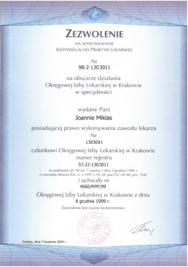Jak Joanna Miklas umawia wizyty?Joanna Miklas używa kalendarza ZnanyLekarz, dlatego na stronie widzisz aktualne terminy. Wystarczy, że wybierzesz datę i godzinę, które odpowiadają Ci najbardziej. Umawianie wizyty jest darmowe, a tuż przed terminem wyślemy Ci przypomnienie.