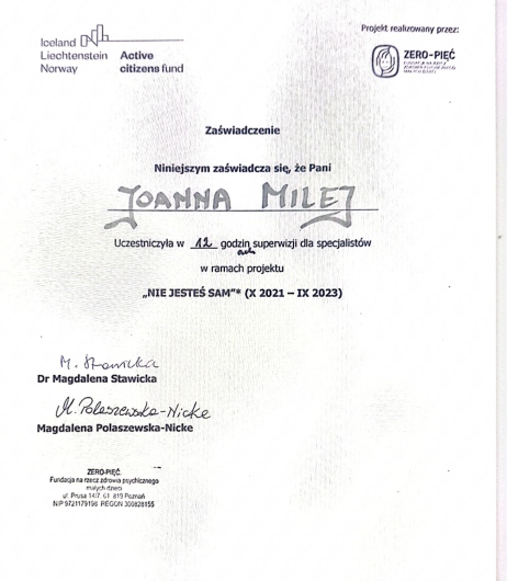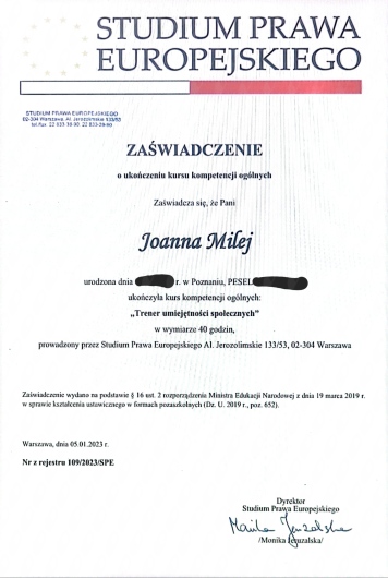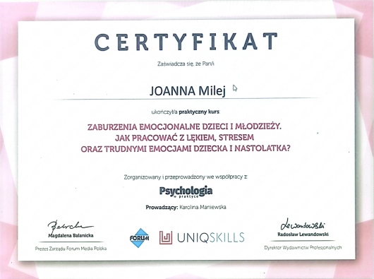 Jestem również certyfikowanym trenerem TUS (Treningu Umiejętności Społecznych).
