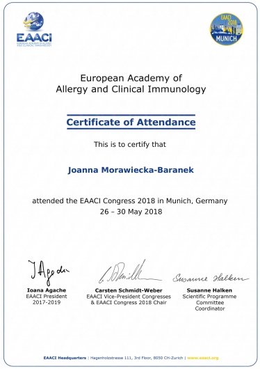 Biorę udział w licznych konferencjach i sympozjach naukowych z dziedziny alergologii i pediatrii. Jestem członkiem Polskiego Towarzystwa Alergologicznego oraz Polskiego Towarzystwa Pediatrycznego.