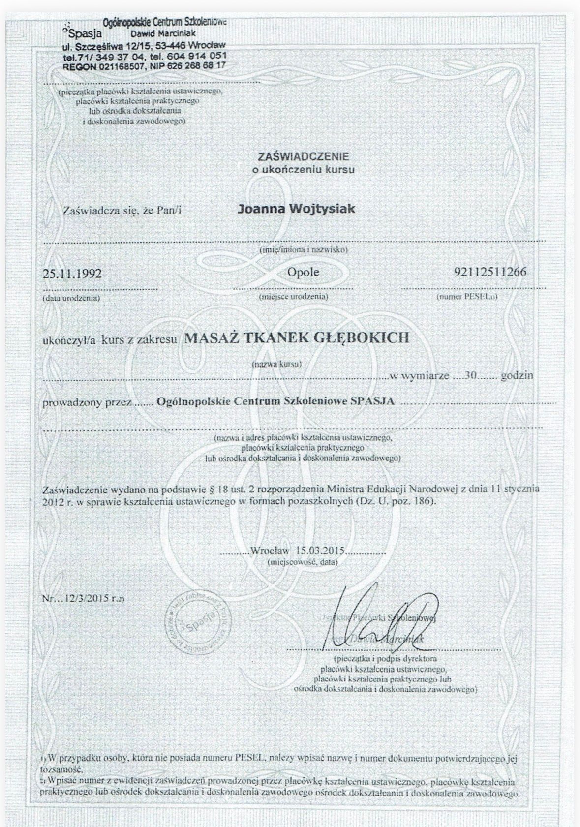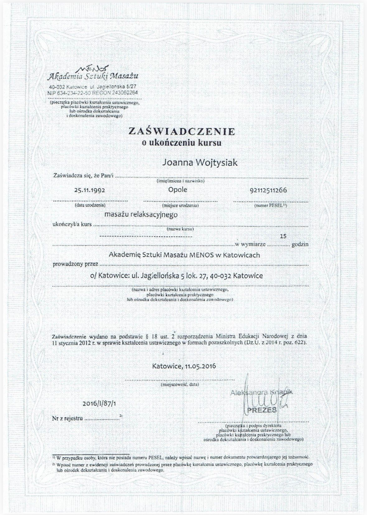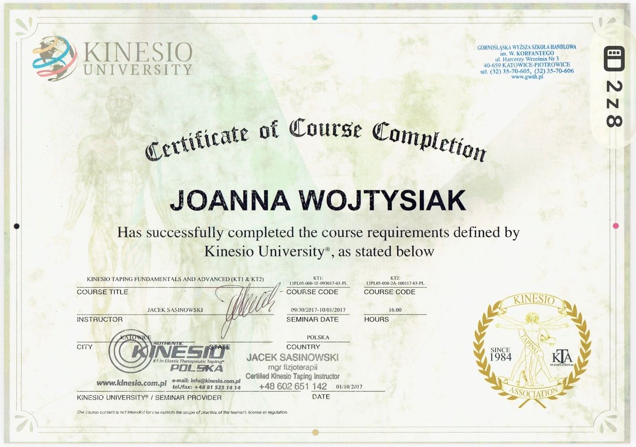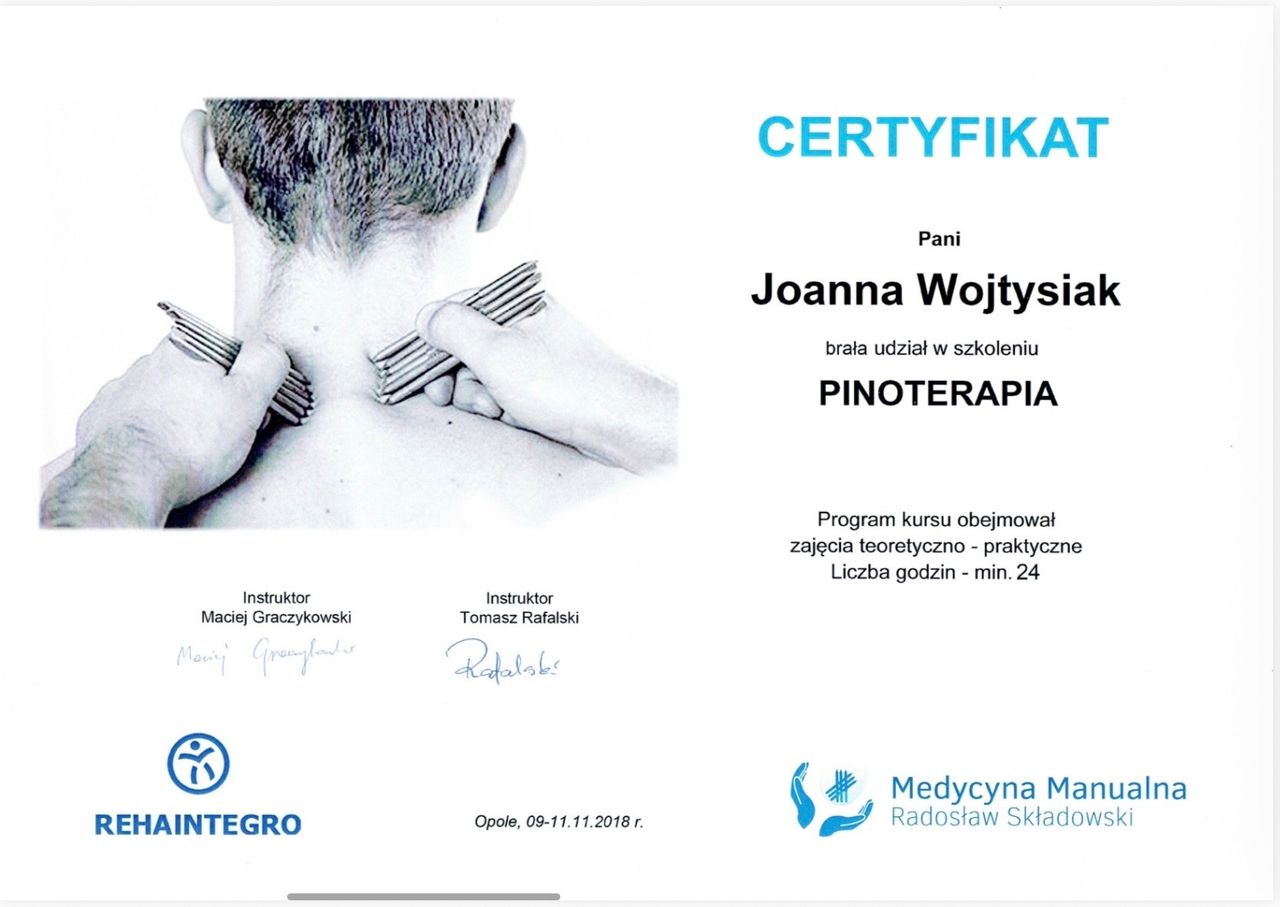 Pani Joasia to cudowna fizjoterapeuta z powołania. Do pracy podchodzi z niesamowitą uwagą oraz z wyczuciem problemu. Łączy ogromną wiedzę z empatią i skutecznością. Dzięki specjalistycznym technikom, które zastosowała -masaż poprzeczny, terapia narzędziowa i inne różne techniki, których nie jestem w stanie wymienić spowodowały, że blizny, które miałam na twarzy po wypadku stały się elastyczne, miękkie i mniej widoczne. Udzieliła mi także świetnych wskazówek jak mam ćwiczyć mięśnie twarzy po skończonej terapii. Wizyty u Pani Joasi nie tylko poprawiły mój wygląd, ale także przywróciły mi pewność siebie i wiarę, że ze wszystkim można sobie poradzić. Bardzo polecam Panią Joasię każdemu, kto szuka kompetentnej pomocy zarówno w problemach z układem ruchu, jak i w wymagającej terapii blizn.