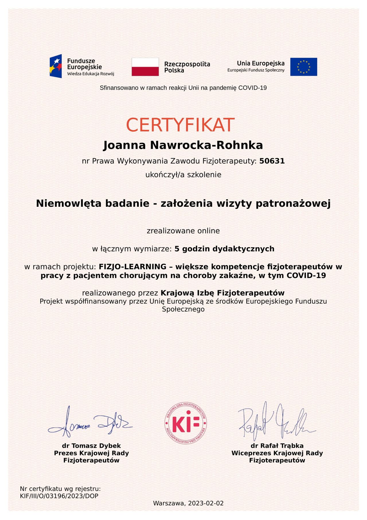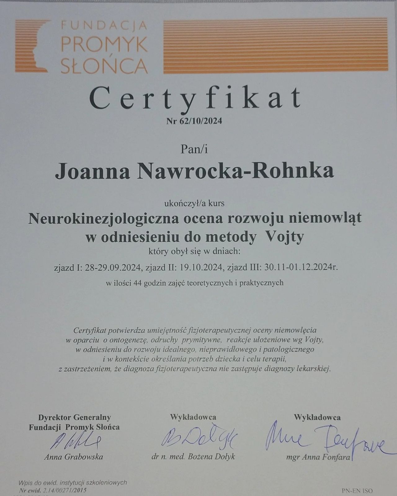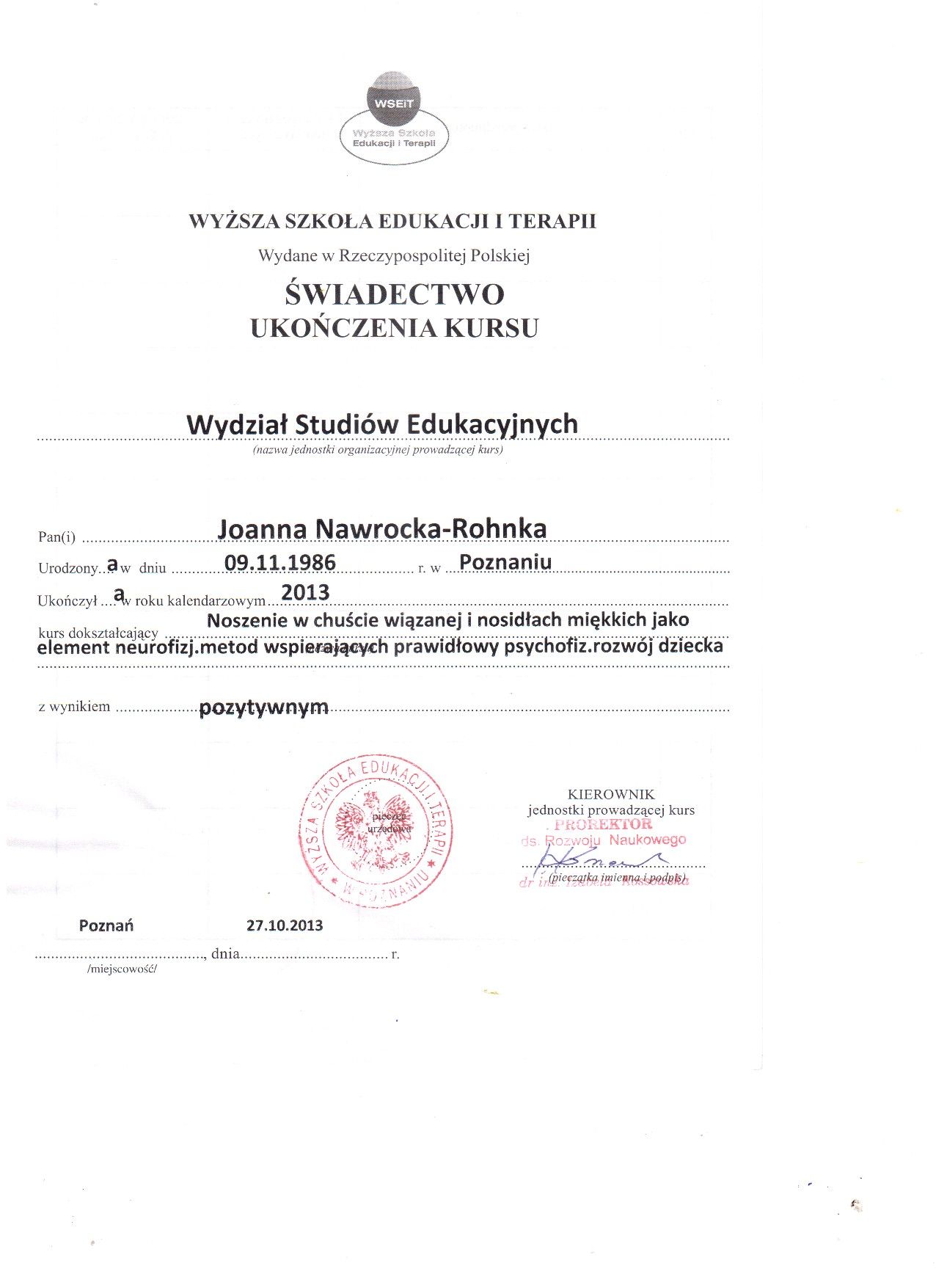 Jestem doktorem nauk o zdrowiu, fizjoterapeutką (prawo wykonywania zawodu nr: 50631), specjalistką zdrowia publicznego. Od 2007 roku pomagam rodzicom wspierać rozwój ich dzieci.