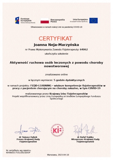 Jaki jest zakres porad oferowanych przez Joanna Neja-Marzyńska?Joanna Neja-Marzyńska to fizjoterapeuta. Na podstawie swojego doświadczenia i wykształcenia Joanna Neja-Marzyńska oferuje usługi takie jak: konsultacja fizjoterapeutyczna (pierwsza wizyta), Masaż Kobido (wizyta pierwszorazowa), Masaż Kobido (kolejna wizyta), konsultacja fizjoterapeutyczna (kolejna wizyta), fizjoterapia dzieci, Fizjoterapia stomatologiczna (kolejna wizyta), Fizjoterapia stomatologiczna (pierwsza wizyta).