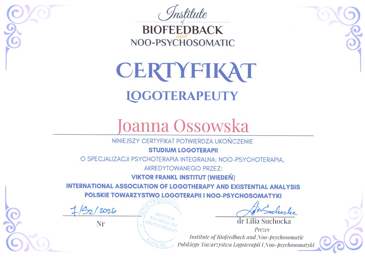 Chciałabym serdecznie polecić Panią Joannę Ossowską jako wyjątkowego psychologa dziecięcego. Dzięki profesjonalnemu podejściu, empatii i ogromnemu zaangażowaniu, moja córka szybko poczuła się bezpiecznie i komfortowo podczas każdej wizyty. Wizyty przynoszą widoczne efekty – poprawiła się komunikacja, samopoczucie mojego dziecka. Pani Doktor potrafi doskonale dostosować metody pracy do indywidualnych potrzeb dziecka, co sprawia, że każde spotkanie jest nie tylko pomocne, ale i przyjemne. Z całego serca polecam tę osobę wszystkim rodzicom, którzy szukają wsparcia dla swoich pociech.