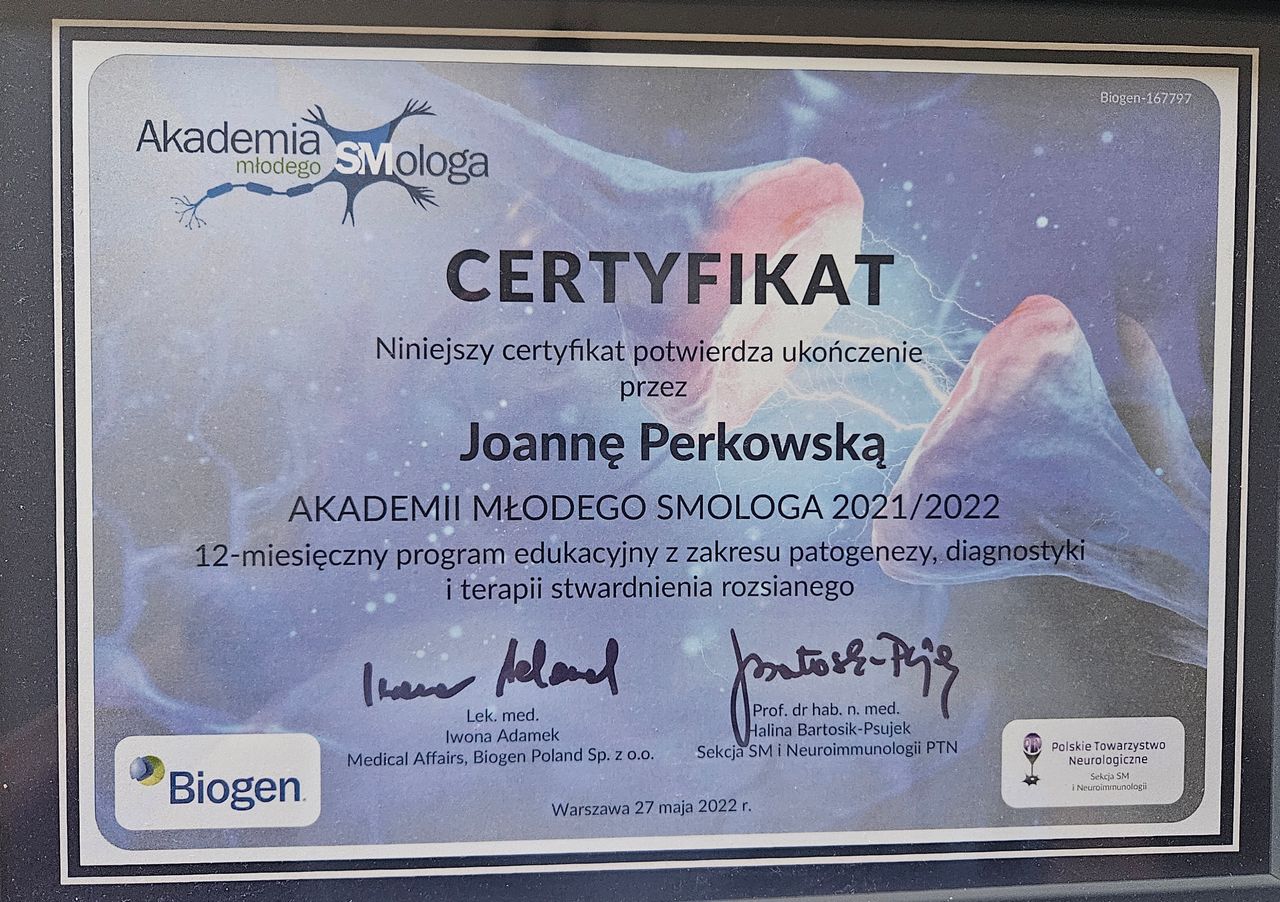 Jestem absolwentką Akademii Medycznej w Gdańsku, którą ukończyłam w 2013r. Następnie odbyłam szkolenie specjalizacyjne w dziedzinie neurologii w Oddziale Neurologicznym Szpitala Św. Wojciecha Copernicus PL w Gdańsku. W 2021r. zdałam Państwowy Egzamin Specjalizacyjny z Neurologii na ocenę bardzo dobrą. Otrzymałam wyróżnienie Ministra Zdrowia „ Specjalista 2021”. Specjalizuję się w diagnostyce i leczeniu stwardnienia rozsianego oraz chorób demielinizacyjnych ze spektrum NMO. Od 2021r. prowadzę Poradnię Leczenia Stwardnienia Rozsianego, a także Program Lekowy SM. Ukończyłam roczny kurs „Akademia Młodego SMologa”. W kręgu moich zainteresowań znajdują się także choroby kręgosłupa, zespoły bólowe głowy, zawroty głowy, padaczka, udar mózgu, zespoły otępienne, neuropatie, ch.Parkinsona. W latach 2021- 2023 byłam konsultantem neurologicznym w Pomorskim Centrum Reumatologii. Pracowałam także w Oddziale Chorób Zakaźnych, gdzie prowadzę diagnostykę i leczenie pacjentów z neuroinfekcjami m.in. neuroboreliozą, zapaleniem opon mózgowo- rdzeniowych, a także neurologicznych pacjentów z niedoborami odporności. Jestem Członkiem Polskiego Towarzystwa Neurologii oraz Polskiego Towarzystwa Neurofizjologii Klinicznej.