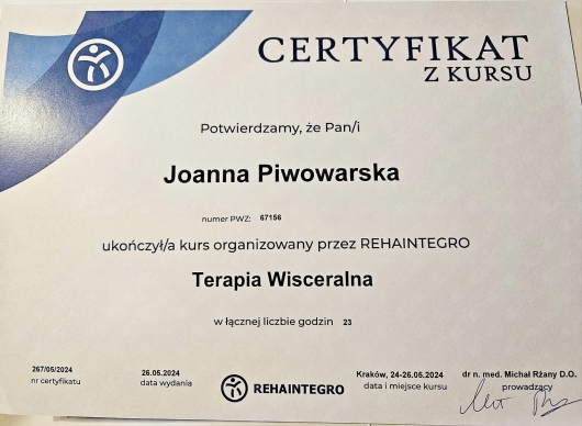 Jestem Członkiem Krajowej Izby Fizjoterapeutów (prawo wykonywania zawodu: 67156) .