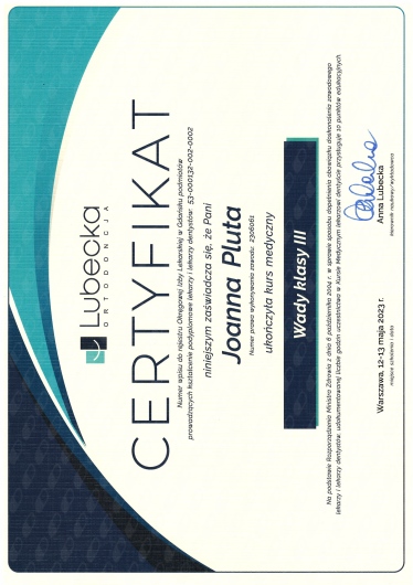 Uczestniczka wielu kursów z zakresu protetyki i endodoncji mikroskopowej. Zainteresowana stomatologią estetyczną oraz ortodoncją.